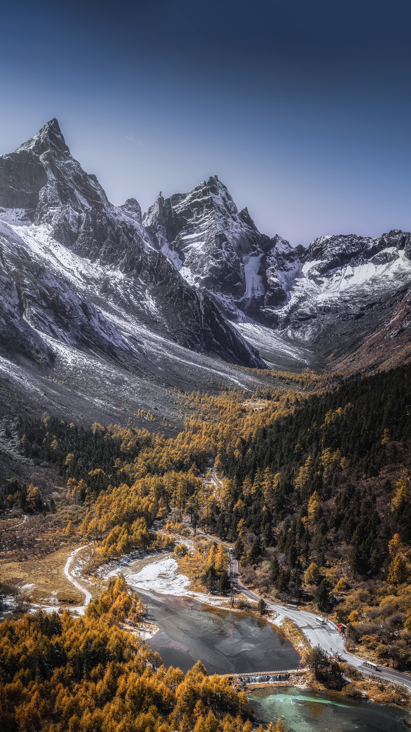 第二天一早杀向毕棚沟,这里的彩林可不是鄙俚“黄了点叶子”那种朦胧秋意,而是整片山谷齐在摒弃!金黄、橙红、深紫重重叠叠,配上蔚蓝湖泊和辽远若有若无的雪顶,仿佛闯进了宫崎骏手稿里。拍照根柢停不下来,手机内存:我谢谢你全家。
